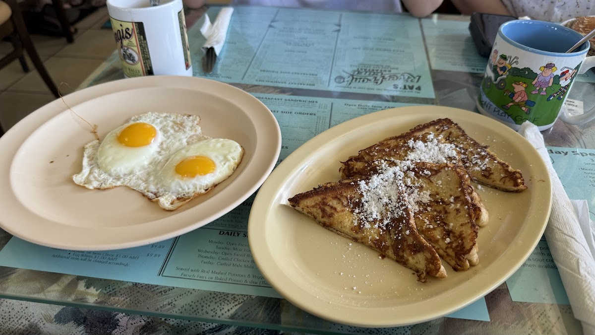 Pat's Riverfront Cafe is also a great place to satisfy your sweet cravings. If you love classic breakfast sweets, don’t miss out on their French Toast Eggs Sunny Side Up or the delicious Blueberry Pancake. Each dish is crafted to offer the perfect balance of sweetness and flavor, making for a perfect start to your morning.