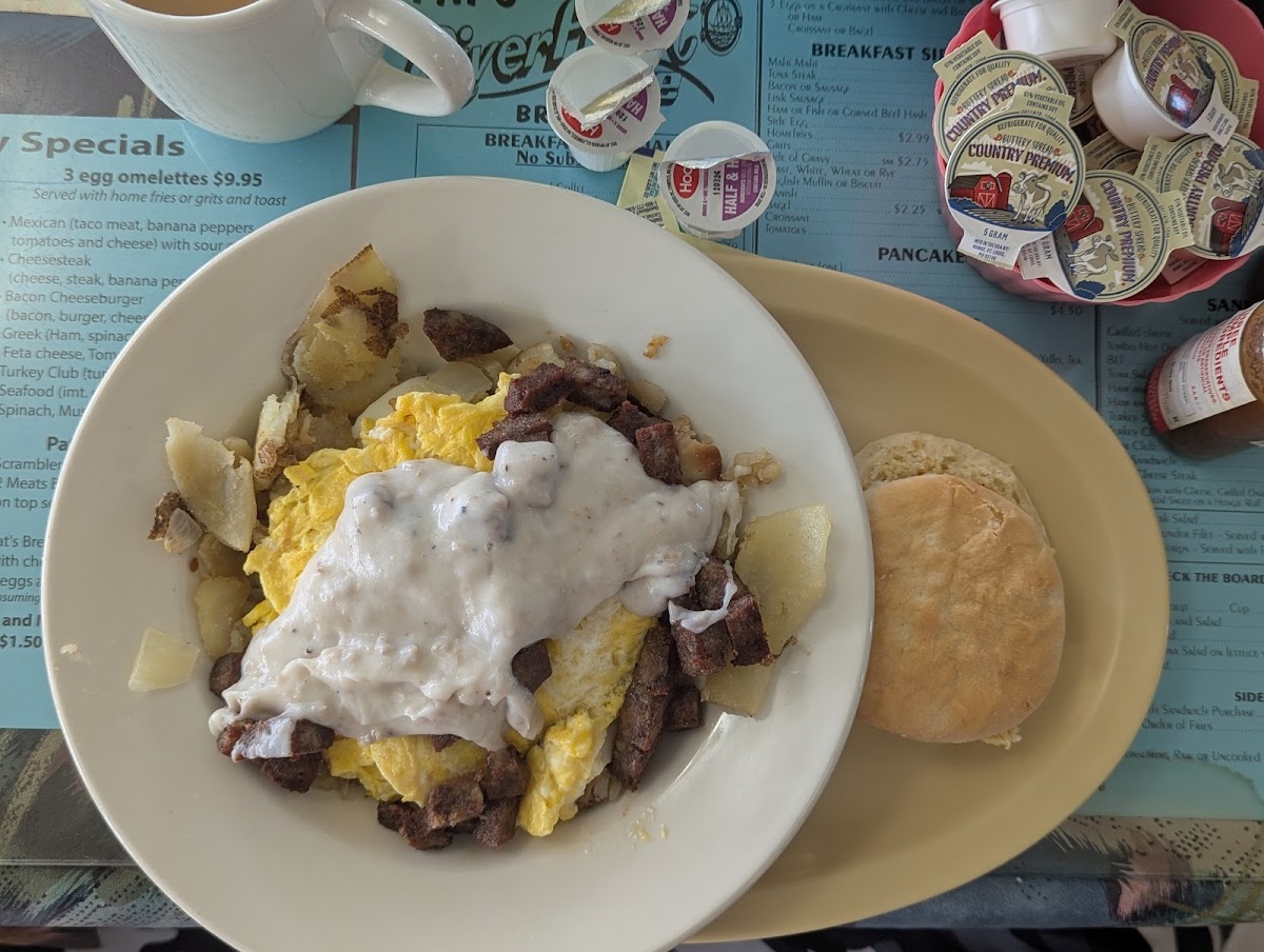 Pat's Riverfront Cafe is not just about great food but also about offering a menu that covers a wide spectrum of flavors. Whether you're in the mood for a traditional breakfast or something a bit different, you'll find something that appeals to your tastes. The cafe's signature items include the Pat's Breakfast Bowl, a comforting mix of eggs, potatoes, and meat, and the Seafood Omelet, packed with fresh, savory ingredients.